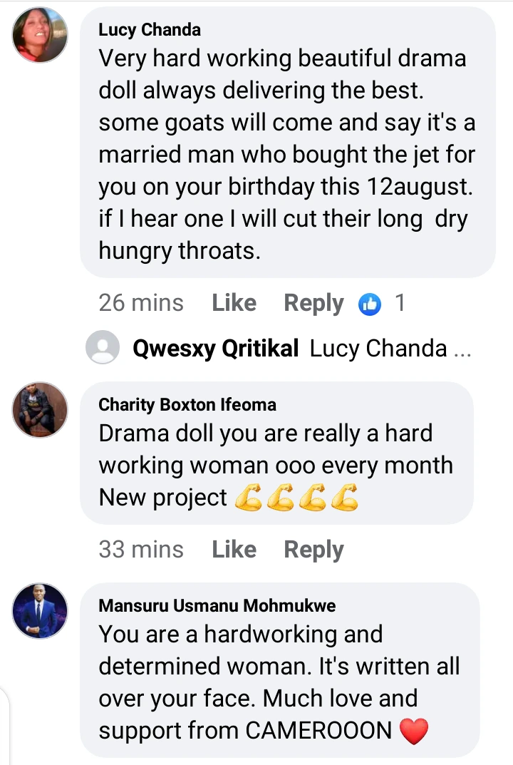 @Charity Ifeoma: "Drama doll you are really a hard-working woman, every month new project"