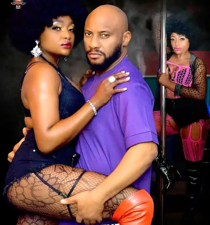 A few moments ago, fans and a plethora of social media users, including sensational actress Destiny Etiko trooped en masse into the social media page of a popular Nollywood actress who goes by the name Lizzy Gold Onuwaje to pour out their reactions after she released a new sultry photo with Yul Edochie, who happens to be a well-known veteran actor. The photo, which is presumed to be from a scene from a movie, captured the moment Yul Edochie was holding her female colleague closely. This photo has sparked several reactions from their fans and social media followers.