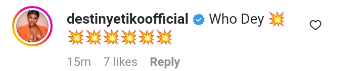 As expected, immediately after the post surfaced online, Destiny Etiko, a popular Nollywood actress and several other fans quickly rushed down to the comment box section to express their reactions from different perspectives.
