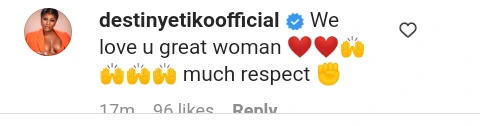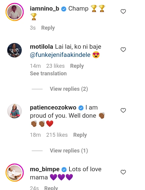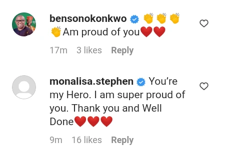 Monalisa Stephen wrote "You are my hero, I am super proud of you, thank you and well done".
