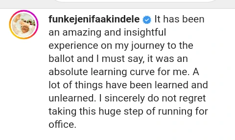 While sharing the pictures on her official Instagram page, she said it has been amazing and insightful experience on her journey to the ballot, she said it was an absolute learning curve for her. She also thanked all those who supported her, many of her Colleagues have gone to her page to say lot of good things about her.