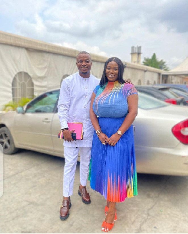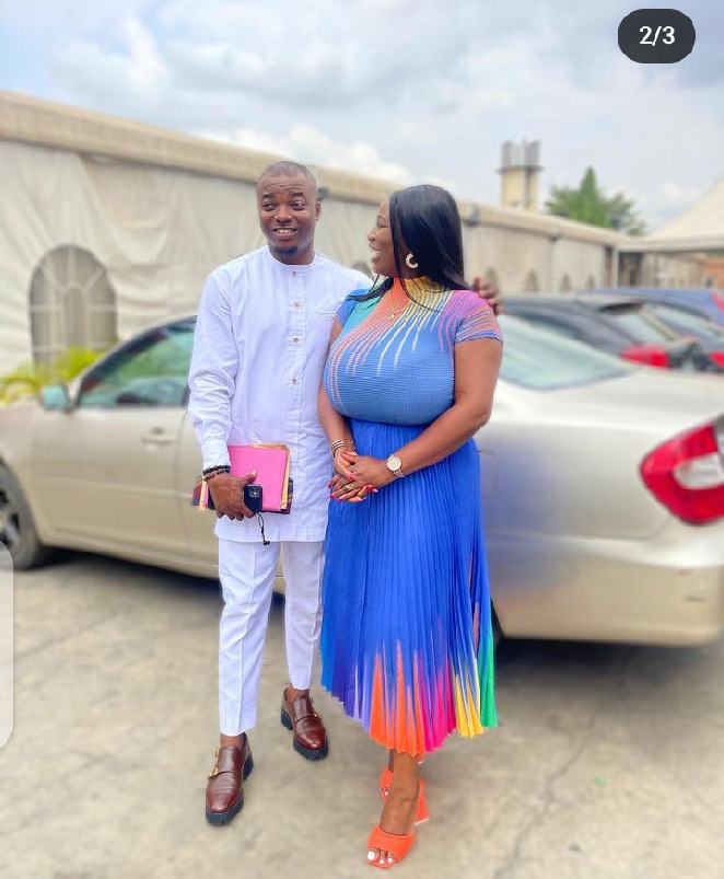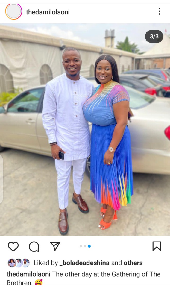 Lovely fans and followers have gushed over Popular Nollywood actress, Damilola Oni as she took to her Instagram page to share adorable pictures of herself with unidentified man.Damilola Oni looks so beautiful, attractive, classy, and gorgeous in her lovely multi-coloured gown dress she rocked matching with lovely shoes very excited with beautiful smiles on their faces, as they posed for the camera in styles. She made known in her post that she snapped these pictures on the other day at the gathering of the Brethren.