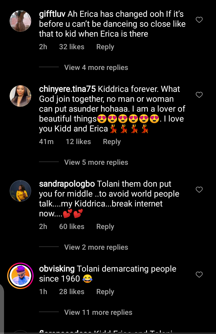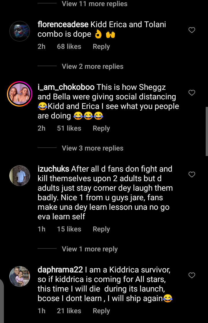 Another fan said this was how Sheggz and Erica were giving social distancing, adding that she sees what Kiddwaya and Erica are doing.