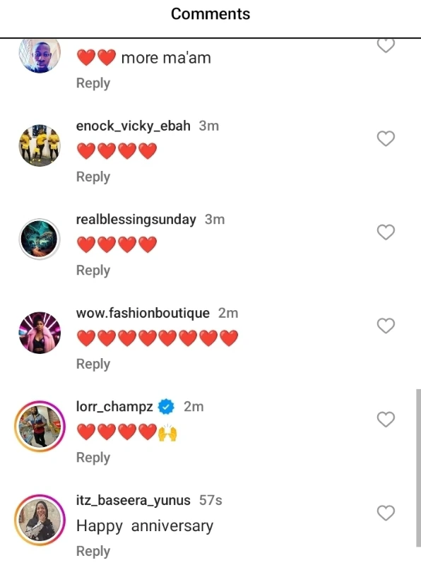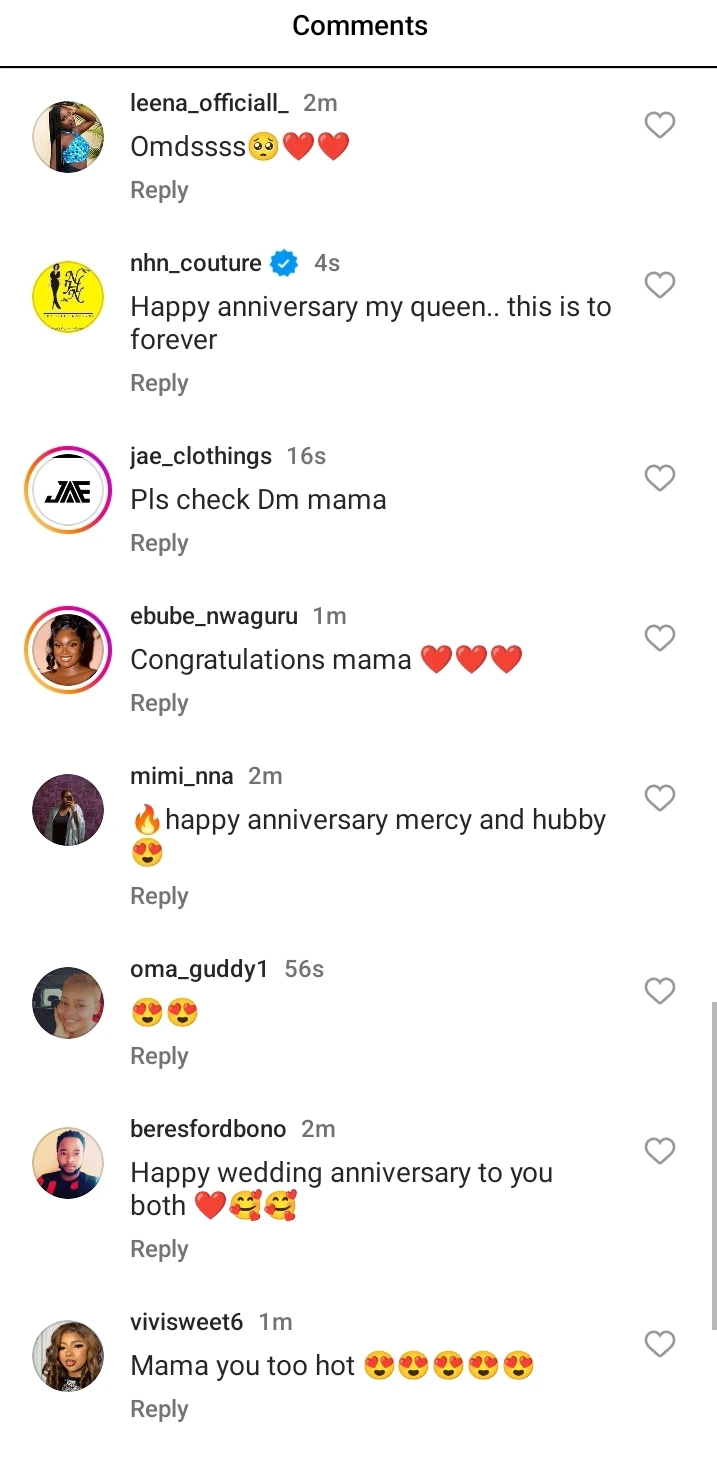 Moreover, the photos she shared to mark their twelve years wedding anniversary also thrilled her fans as well. Some of the fans were so excited to the extent of even reacting with lovely words and charming emojis. Below are some screenshots showing fans reactions on Mercy Johnson Okojie's post on Instagram.